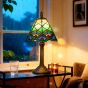 LYNDARIS Geometric Patterns Table Lamp with Handcrafted Antique Glass and E27 Socket - Green