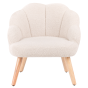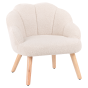 This adorable beige armchair adds a touch of charm to any child’s room. With its delightful shell inspired design and cosy boucle upholstery, it’s a perfect blend of style and comfort. Whether nestled in a playroom or nursery, it offers a snug spot for little ones to relax, read, or enjoy their favourite toys. Supported by durable wooden legs, this chair provides both elegance and dependable stability.