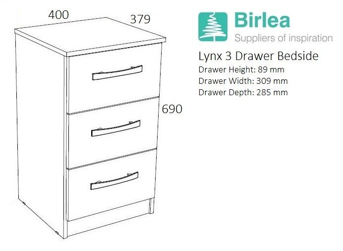 Bedside Table - LYNX 3 Drawer Nightstand White and Grey 40cm