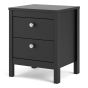 Bedside Table - MADRID 2 Drawer Nightstand Matt Black 43.6cm
