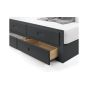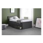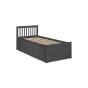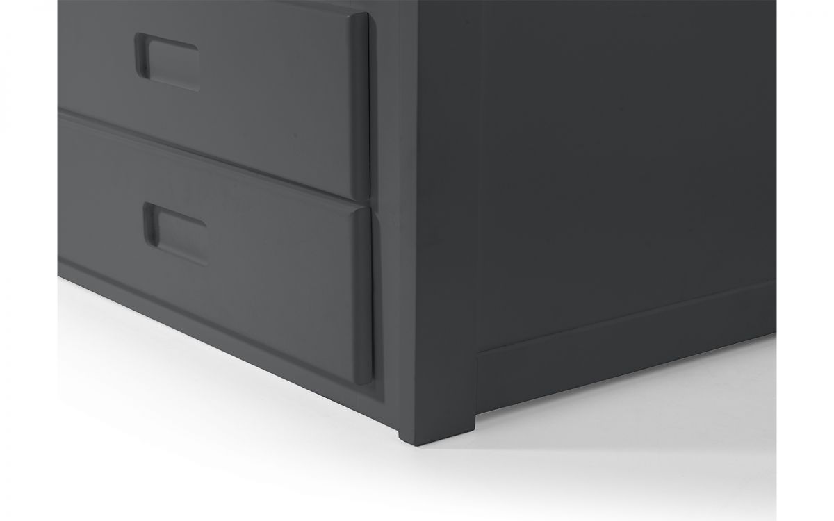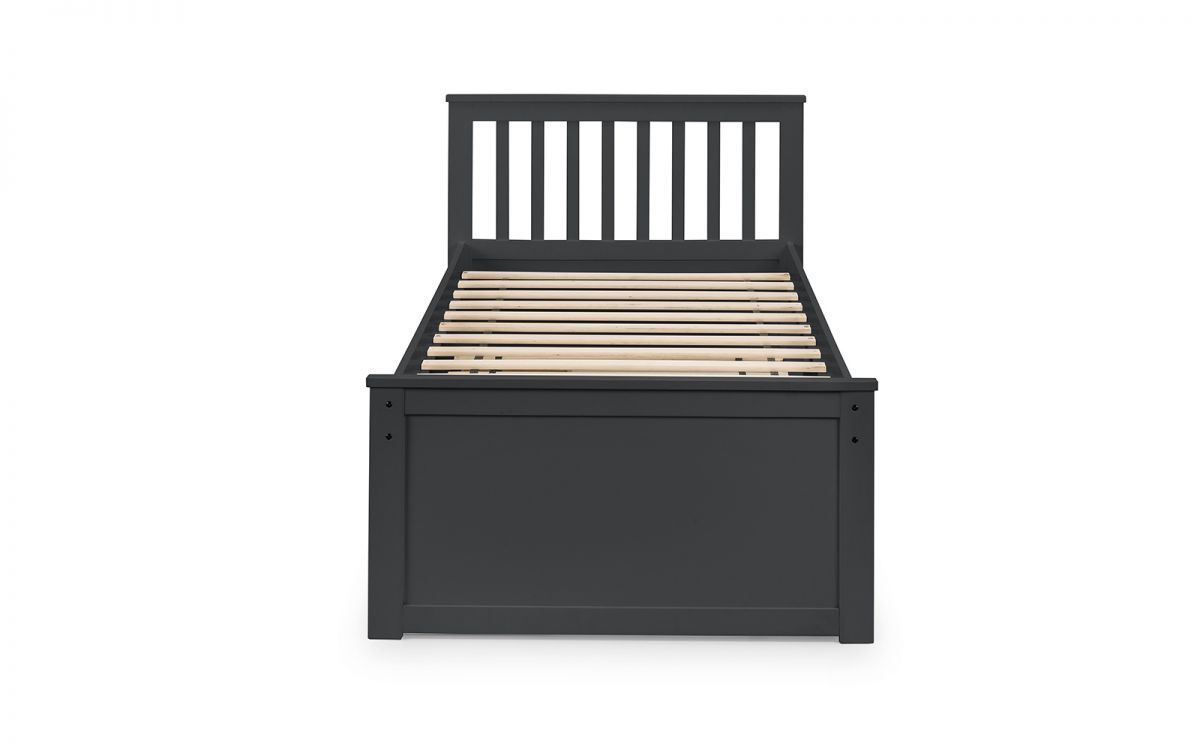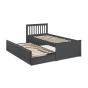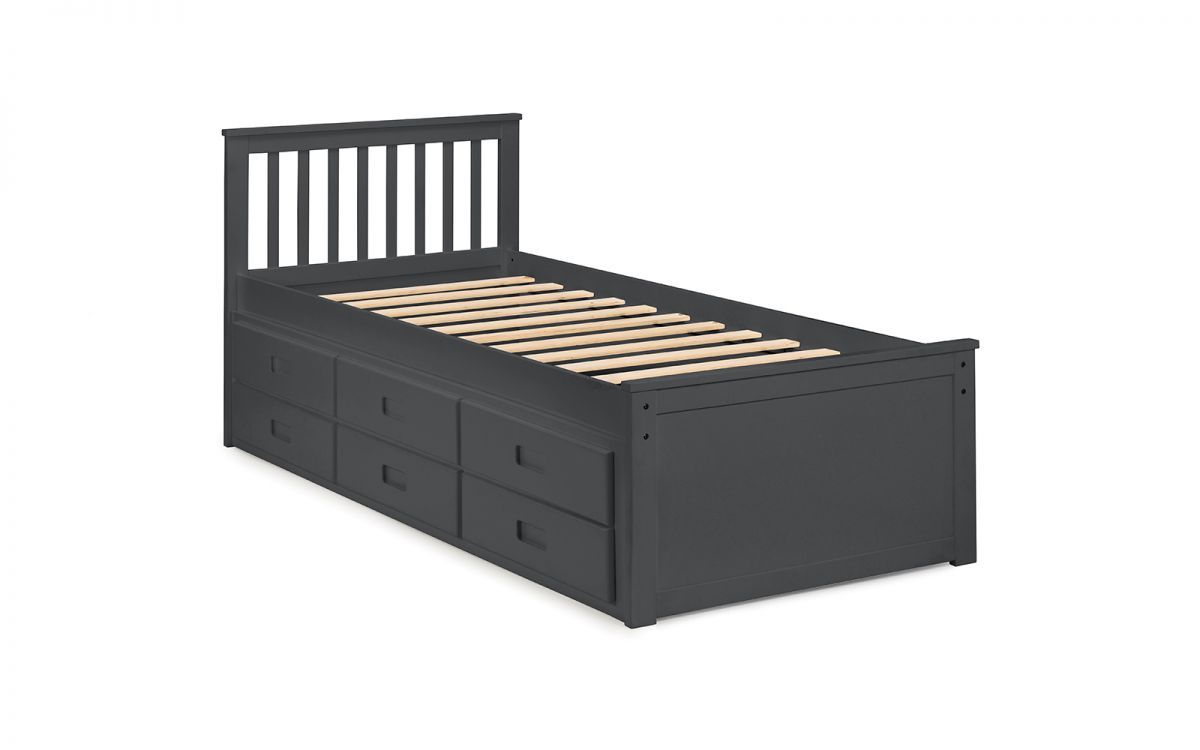 Finished in a crisp anthracite lacquer, the Maisie bed features a traditional slatted headboard. Providing sleeping space for two people, this bed includes a pull-out underbed and additional storage drawers, maximising the available floor space. Perfect for any children’s bedroom or guest room.