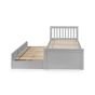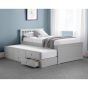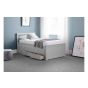 Finished in a crisp grey lacquer, the Maisie bed features a traditional slatted headboard. Providing sleeping space for two people, this bed includes a pull-out underbed and additional storage drawers, maximising the available floor space. Perfect for any children’s bedroom or guest room.