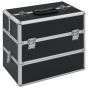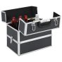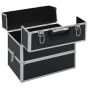 Our make-up case is the ideal solution for keeping your cosmetics neatly organised. Simply pack everything you need in this practical beauty case and take it with you! Made of wood, ABS sheeting, as well as aluminium, this make-up case will handily store your cosmetics and maintain them in perfect condition. This vanity case features 2 tiers and the top tier is extendable outwards, providing ample storage space for your cosmetics and beauty products. Additionally, it features a carrying handle which enables you to easily take along everywhere you go!