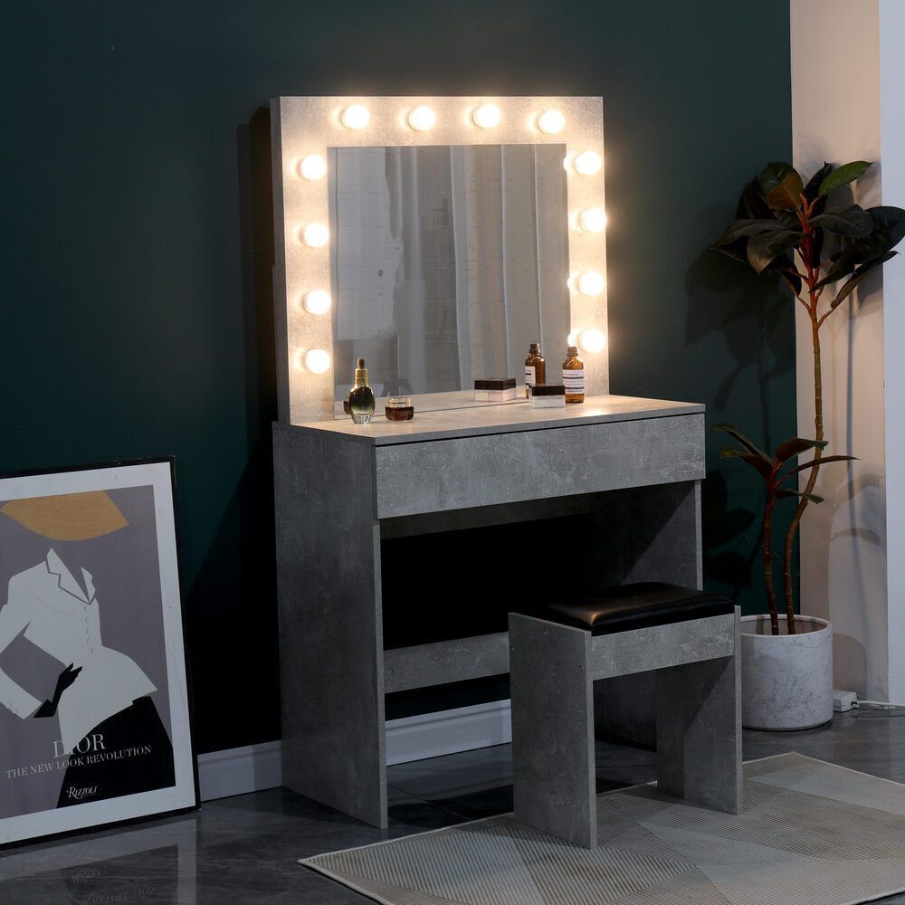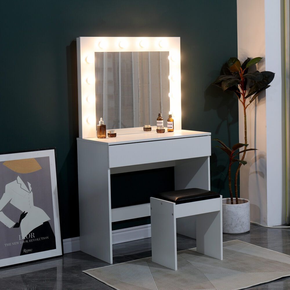 Makeup Desk Vanity Dressing Table with LED Mirror and Stool Set - 4 Colour
