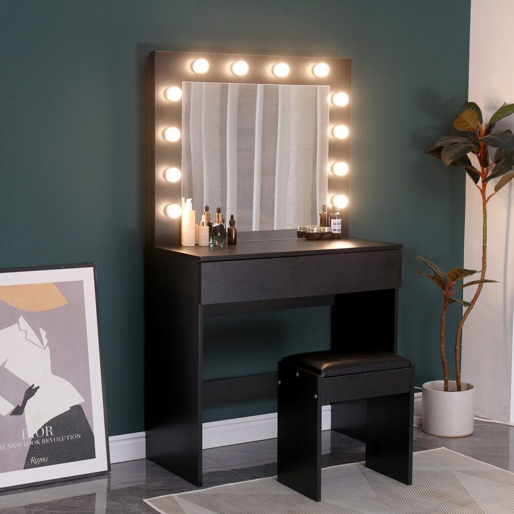 - LED Dressing Table in black, white, grey, or Sonoma oak.