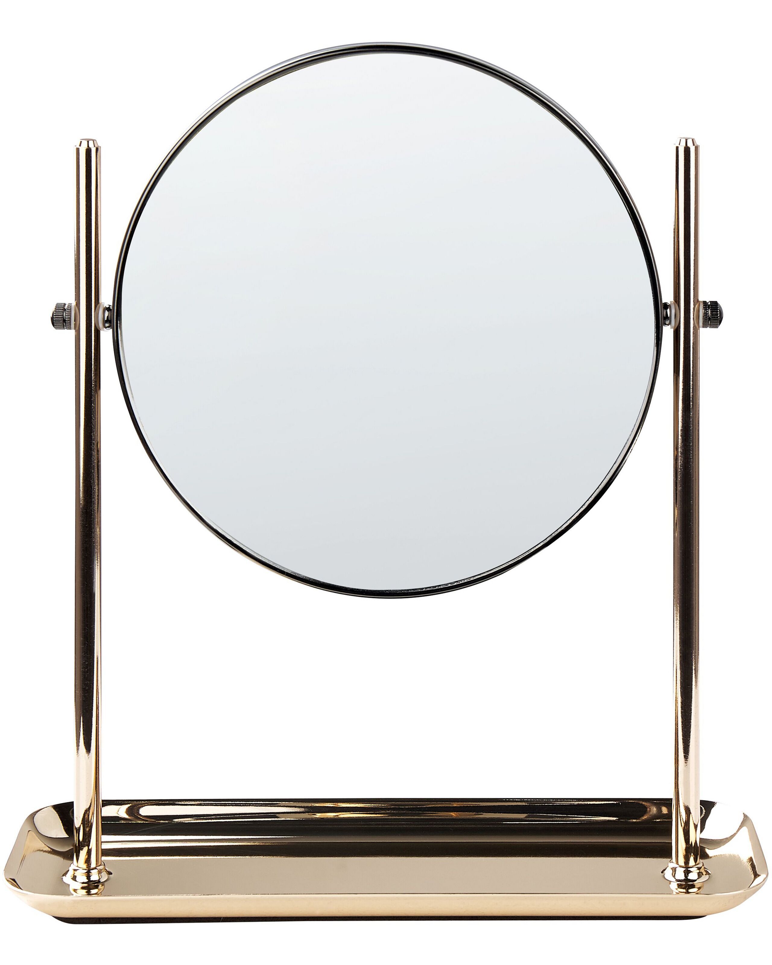Make sure you have everything you need in your beauty corner with this makeup mirror. The piece features two sides, with one magnifying, which will help you with your morning or evening routine. What is more, it features a tray, where you'll be able to put various accessories or favourite jewellery. Crafted out of durable iron, the piece is very low maintenance. Details: Color: Gold, Black. Main material: Iron. Weight: 1.1 Assembly: Does Not Require Assembly