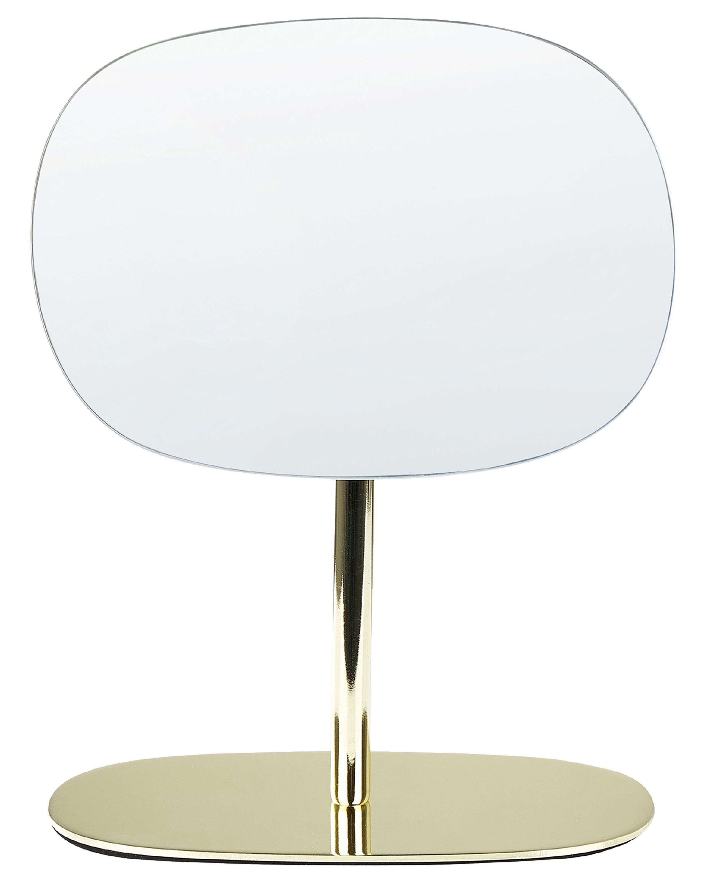 Applying a perfect makeup will be easy with this gold table mirror. Designed with a swivel feature, it allows you to position it at any angle that you need. The frameless style combined with a glossy gold stand give it a glamour feel. Great accessory for any bathroom, bedroom or living room. Details: Color: Gold. Main material: Metal. Additional material: Glass. Weight: 0.6 Assembly: Does Not Require Assembly