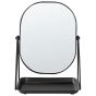 Stylish and functional, this table mirror is a piece that can't be missing from your dressing table. Designed with a reversible side, it allows you to see more details thanks to the magnifying feature. A tray like bottom offers a convenient place to put jewellery or small cosmetics. Details: Color: Black. Main material: Metal. Additional material: Glass. Weight: 0.8 Assembly: Does Not Require Assembly
