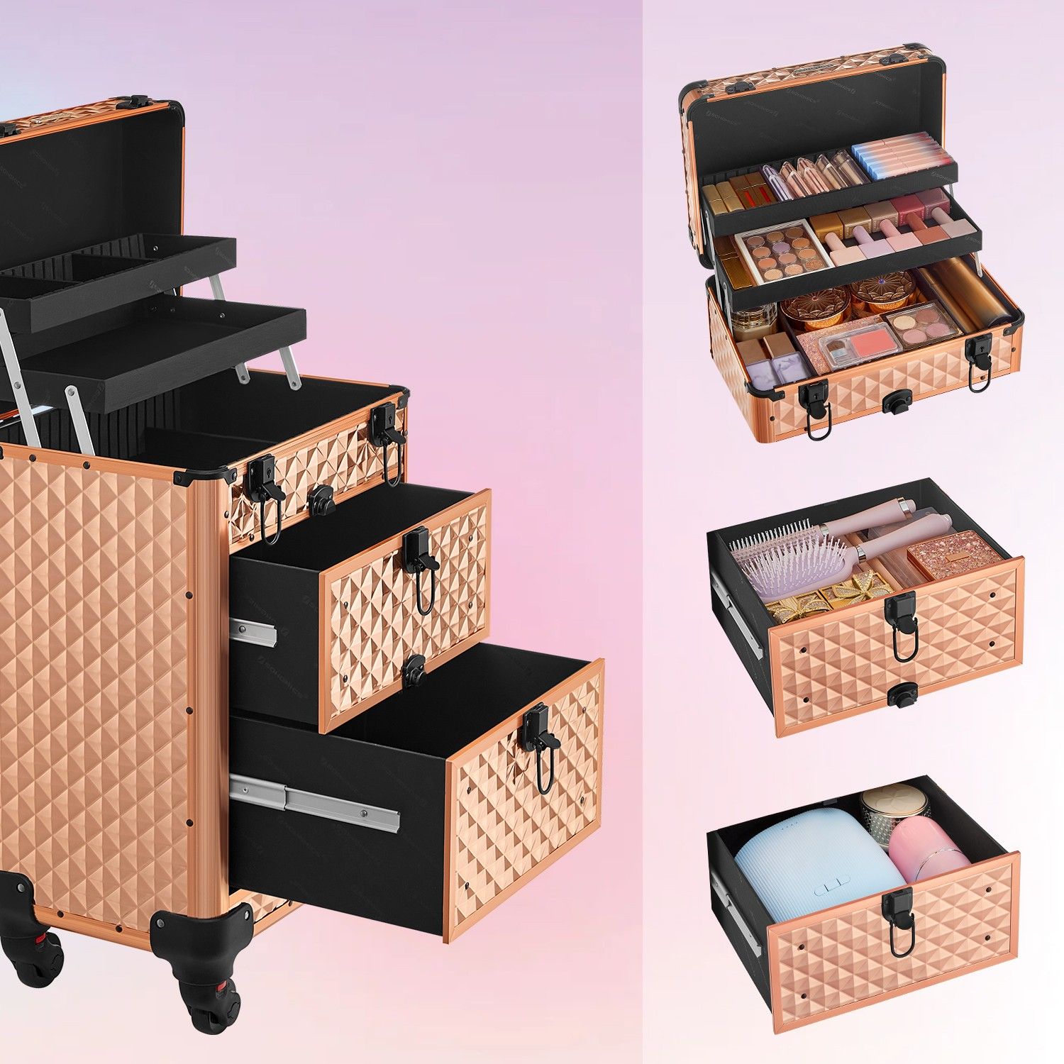 Makeup Trolley - VERRIA Beauty Case on Wheels with 2 Drawer - Pink
