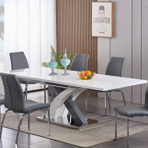 Malcolm High Gloss Extending Dining Table - White and Grey