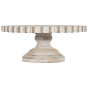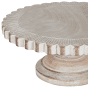 Crafted from authentic mango wood, this cake stand embodies rustic elegance. The wood's natural beauty is enhanced with a subtle white finish, allowing the mesmerizing wood grain to peek through, creating a charming distressed effect. Elevate your desserts on this unique stand that seamlessly blends timeless charm with modern sophistication. Details: Color: Light Wood, White. Main material: Mango Wood. Weight: 1 Assembly: Does Not Require Assembly Wood type: Mangifera indica Wood Origin: China Overall Dimensions: 30x30x12