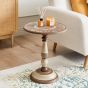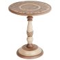This elegant side table is crafted from durable and sustainable mango wood, bringing a natural charm to your living space. The intricate carved detailing on the tabletop adds a touch of artistry, while the sturdy pedestal base ensures stability and style. Ideal for placing next to your sofa or armchair, this table combines functionality with decorative appeal, making it a perfect addition to any modern or bohemian-inspired interior.