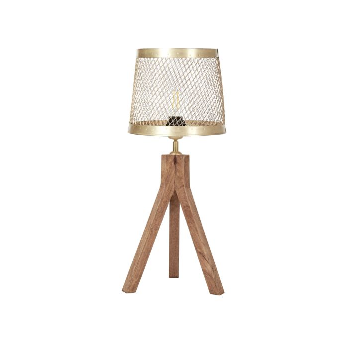 Introduce a mix of classic and contemporary vibe to your bedroom or living room with this stylish table lamp. Handcrafted out of mango wood in dark colour, and iron shade, painted in brass, the piece is sure to draw attention. Due to its design, it produces pleasant, ambient light that is dispersed evenly throughout the room. Thanks to its base and a long cable, it's also very stable. Details: Color: Dark Wood, Brass. Main material: Mango Wood. Additional material: Iron. Weight: 1 Assembly: Does Not Require Assembly Wood type: Mangifera indica Wood Origin: India