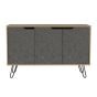 Our 3 door sideboard is ideal for storage with one large and one small cupboard both with shelves. Finished with a bleached pine effect with contrasting stone effect doors this unit is ideal to maximise limited space in any room.