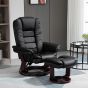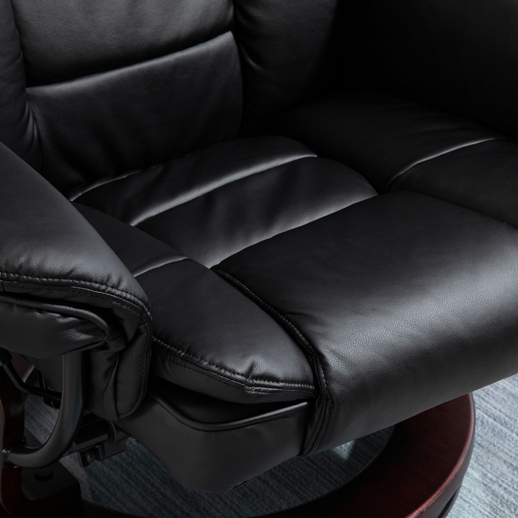 Manual Recliner and Footrest Set PU Leather Leisure Lounge Chair Armchair with Swivel Wood Base, Black