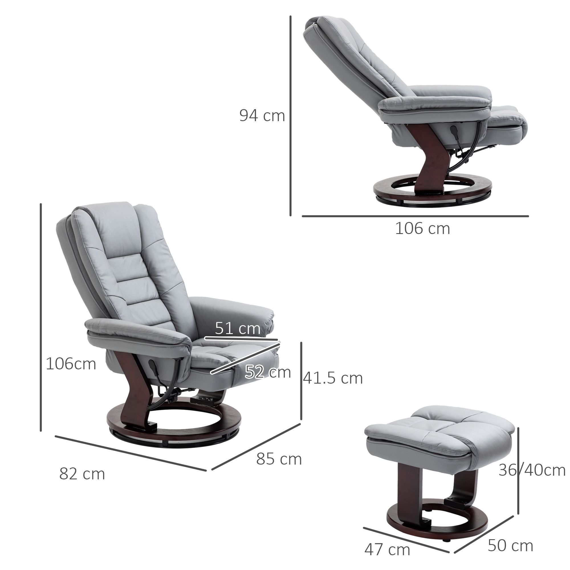 Manual Recliner and Footrest Set PU Leather Leisure Lounge Chair Armchair with Swivel Wood Base, Grey
