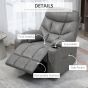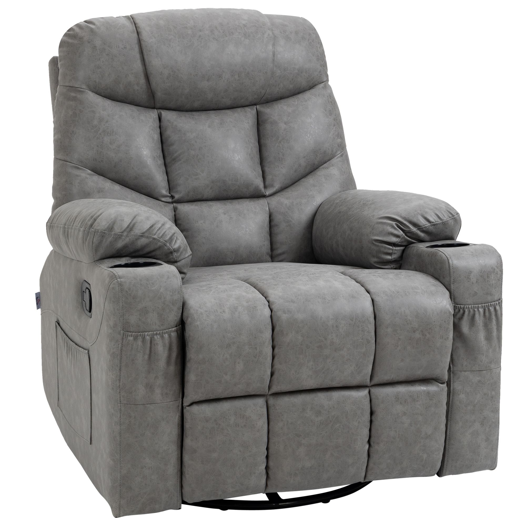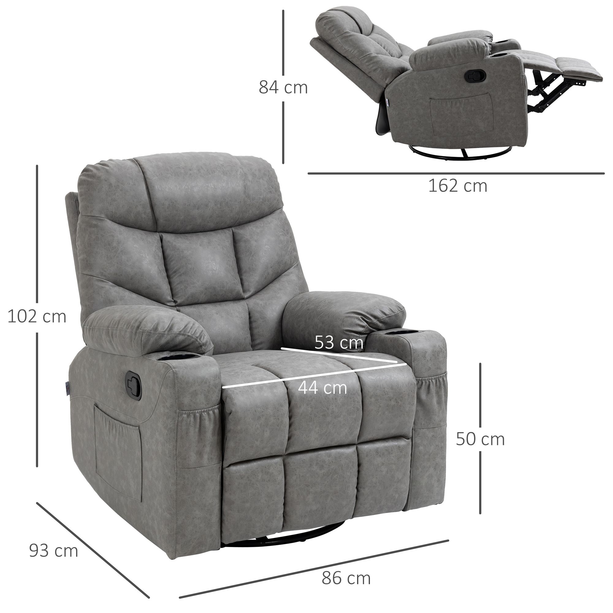 Manual Reclining Chair, Recliner Armchair with Faux Leather, Footrest, Cup Holders, 86x93x102cm, Grey