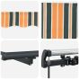 Take your outdoor vibes up a notch with the Manual Retractable Awning, built for both looks and practicality. This awning has a contemporary striped look in green and yellow, making it ideal for summer. The tough polyester fabric is both water-repellent and UV resistant, so your space stays protected from the elements. The operating instructions should be read before mounting and using the product. Keep this manual for future reference. This product is intended for outdoor, and domestic as sun protection or decoration only. Never use it for other purposes or modify the product. Don't use it in places that have vibrations, impulsions, or high temperatures such as walls near furnaces. Always wear suitable personal protective equipment when mounting and adjusting the awning. There is a risk of falling when working at great heights, use suitable fall protection. Be careful during installation, crushing and shearing risks may exist. DO NOT remove the safety wraps.
