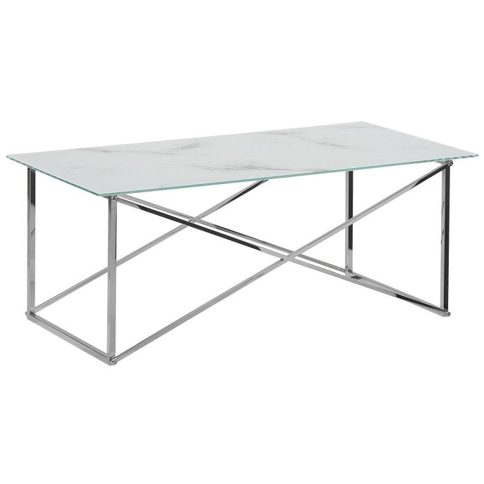 Wide table top, sleek design and luxurious, decorative finish - with this rectangular coffee table you can have it all. Featuring a strong tempered glass top and stainless steel legs it's not only visually attractive but also solid and durable. This table looks perfect in any modern, minimalist or glam-inspired set-up thanks to its marble-like veneer. Details: Color: White, Silver. Main material: Tempered Glass. Additional material: Stainless Steel. Weight: 12 Assembly: Full Assembly Required Weight Capacity: 15 Legs Height: 39