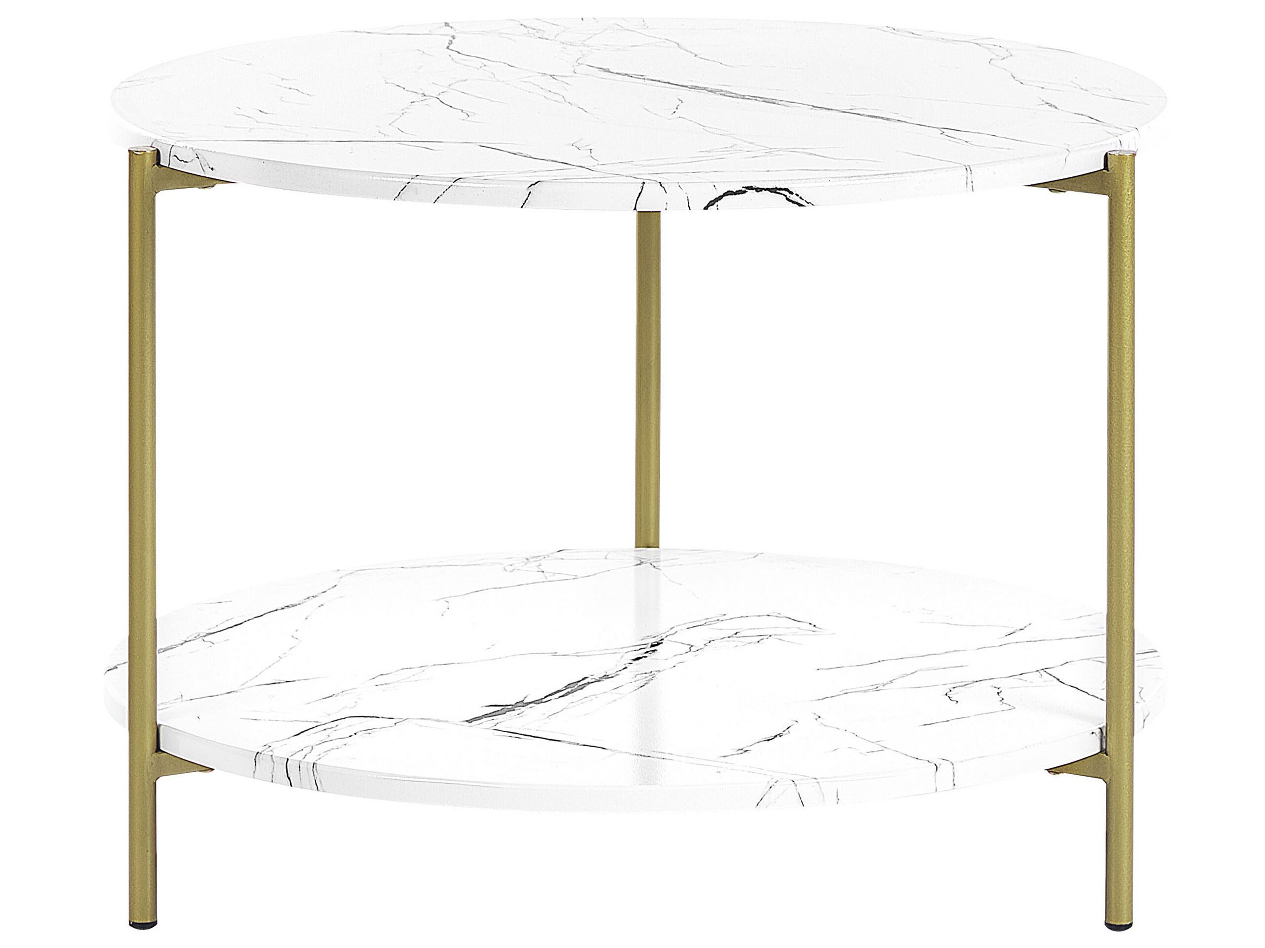 Marble Effect Coffee Table with Shelf White and Gold REVA