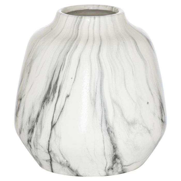 This is the Marble Olpe Vase. This stylish vase combines a contemporary shape with a completely unique hand-dipped marble finish that will wow in any space. The marble effect finish to this elegant vase allows you to layer extra texture into a space. Our collection of marble vases team beautifully with our faux flowers, particularly pure white blooms and eucalyptus.