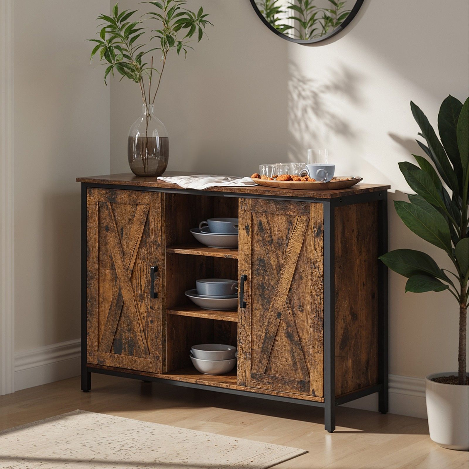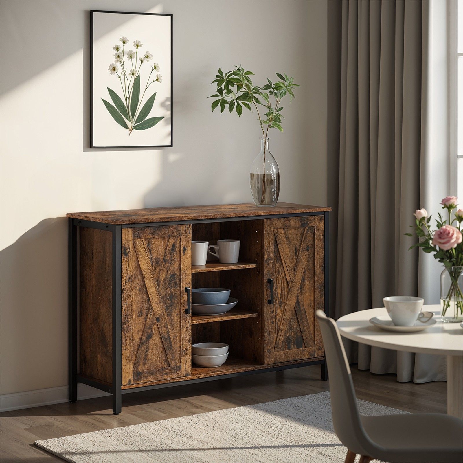 MARLEDOWN Sideboard with Storage Cabinet, Cupboard and Shelves - Brown