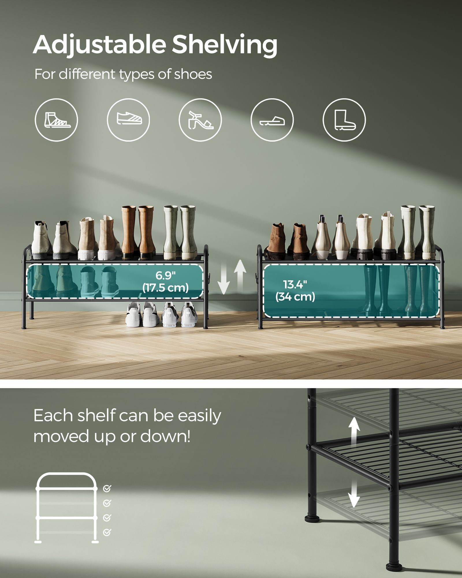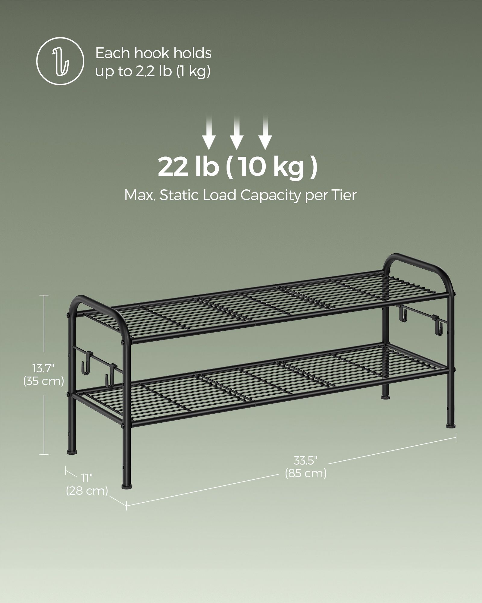 MARNOS Shoe Rack - 2 Tier 4Hooks Metal Medium Sized Rack - Black