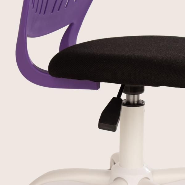 Introducing the Marsha Home Office Chair, a stylish and ergonomic seating solution from Home Done's Marsha furniture range. Designed for teenagers and compact home office spaces, this chair features a vibrant purple plastic seat back, a comfortable black fabric seat, and a sleek white base. The modern design not only adds a pop of color to your workspace but also provides excellent support for extended study or work sessions. Crafted with high-quality materials, the Marsha Office Chair combines functionality and aesthetics, making it a perfect addition to any contemporary home office or study area.