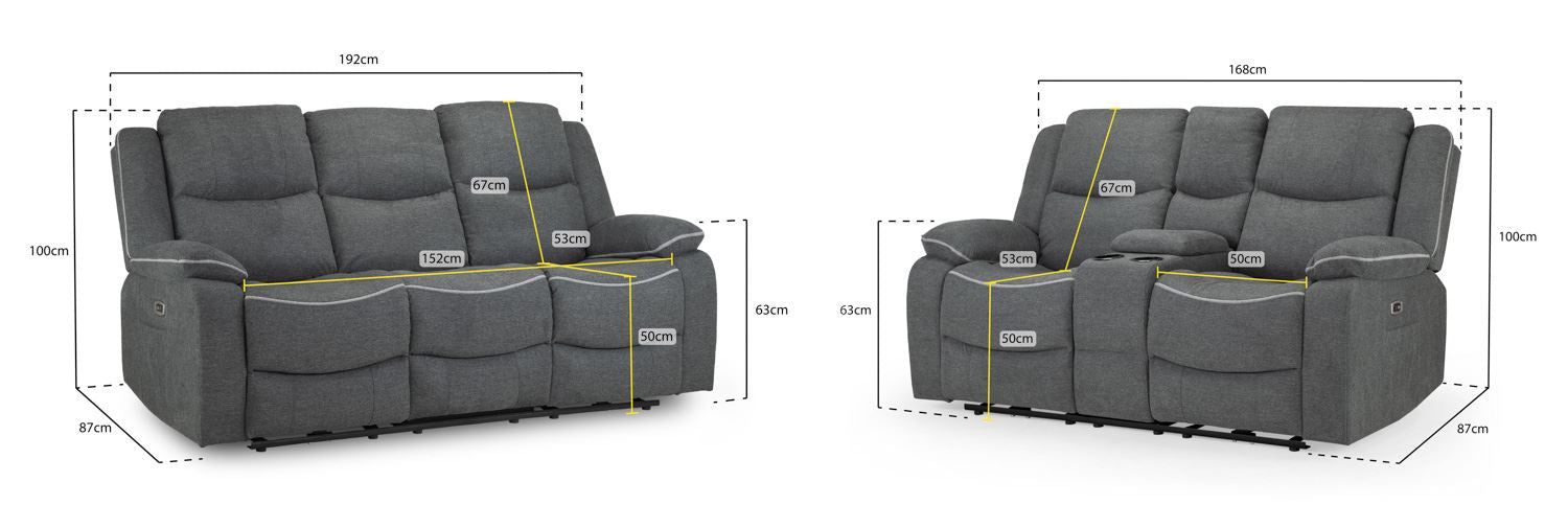 MART Fabric 3 and 2 Seater Electric Recliner Sofa Set - Black