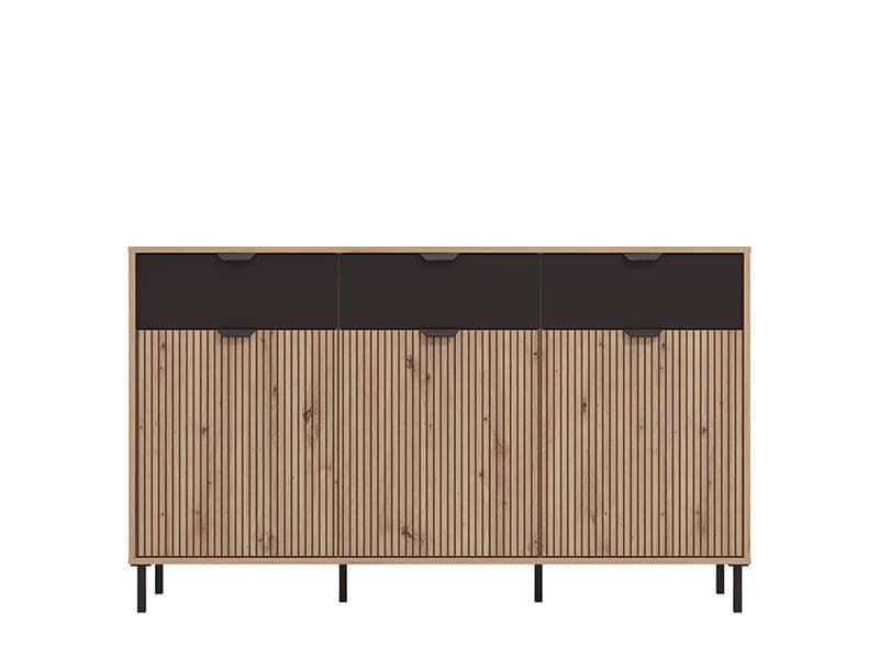 Martinova Artisan Oak Effect Slatted And Black 3 Door Sideboard - Oak