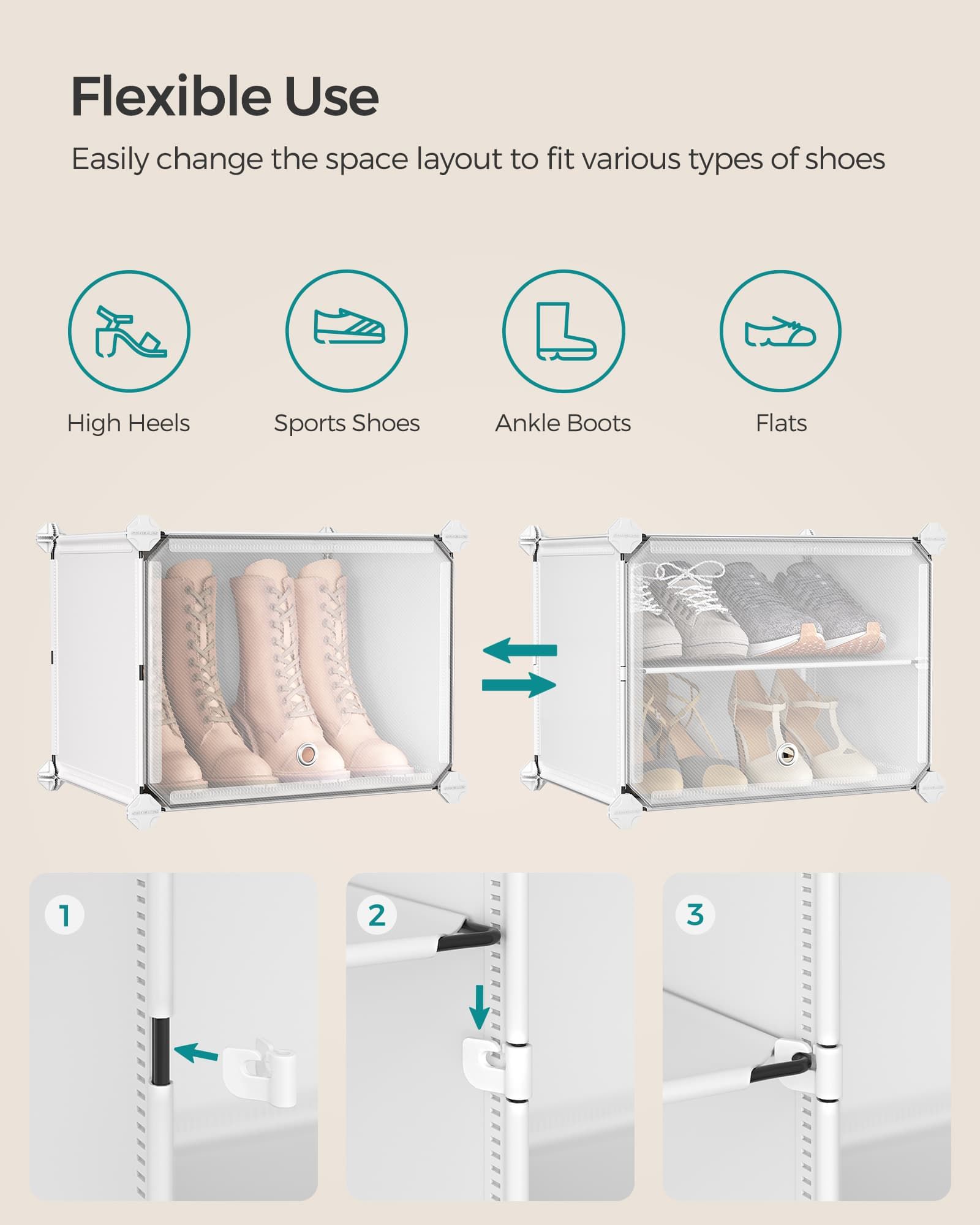 MARTTO Shoe Rack - 24 Box Shelf Interlocking Plastic Tall Large Sized Rack - Cloud White