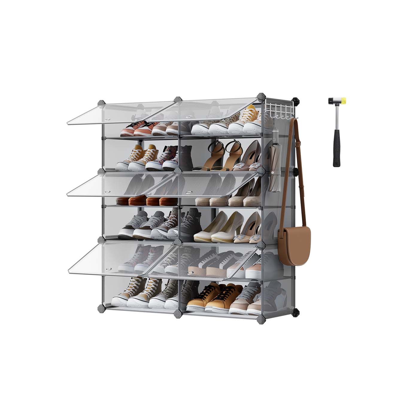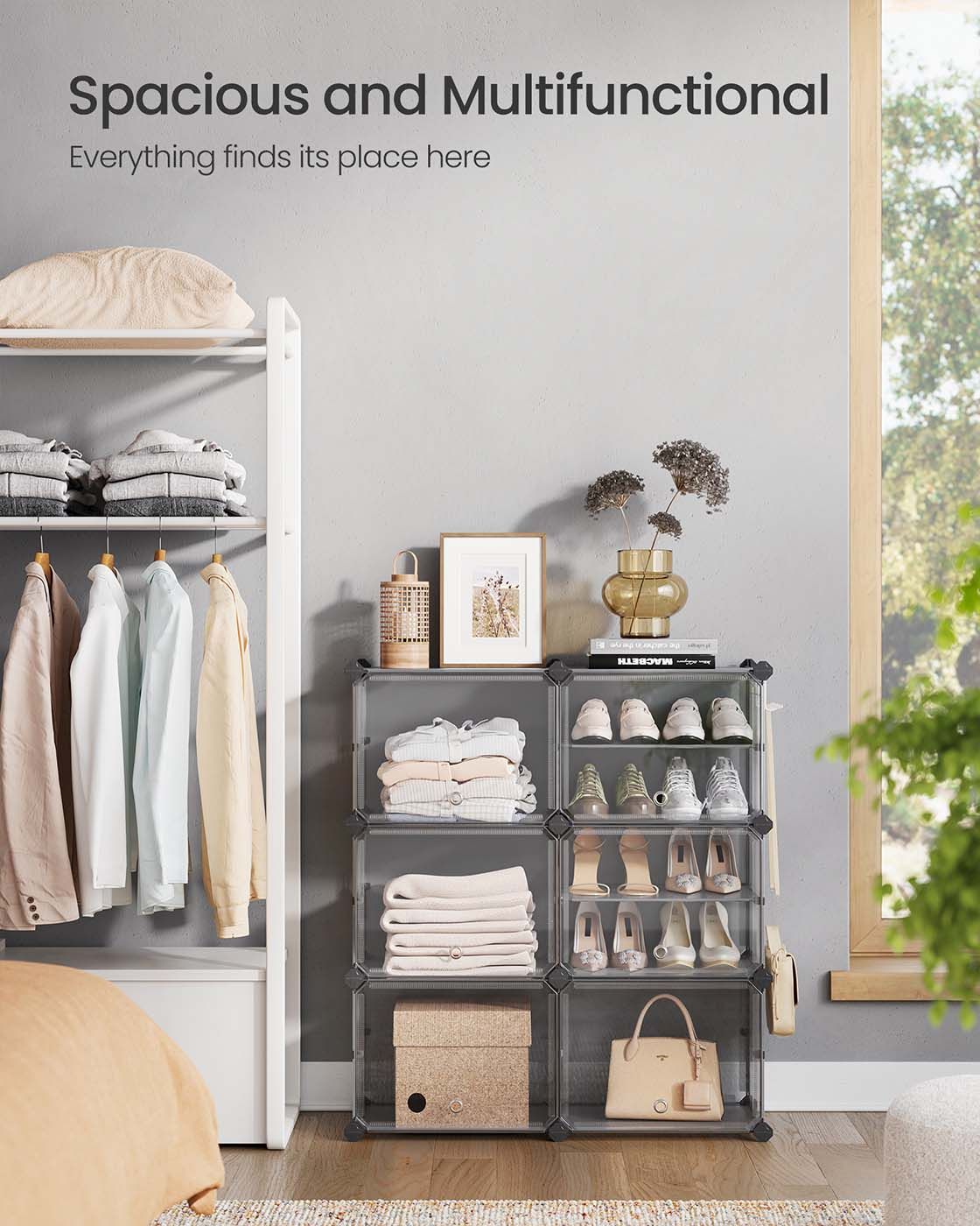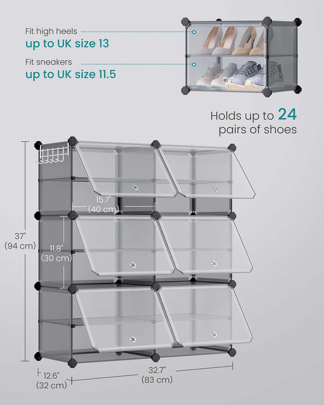 MARTTO Shoe Rack - 6 Slots Interlocking Plastic Medium Sized Rack - Slate Grey