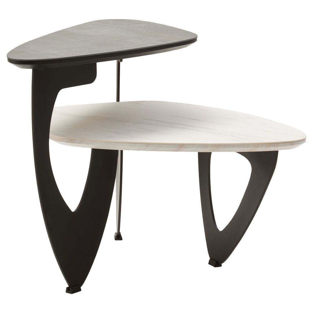 MARVESSAN 2 Tier Small Asymmetrical Ceramic Coffee Table - Black and White