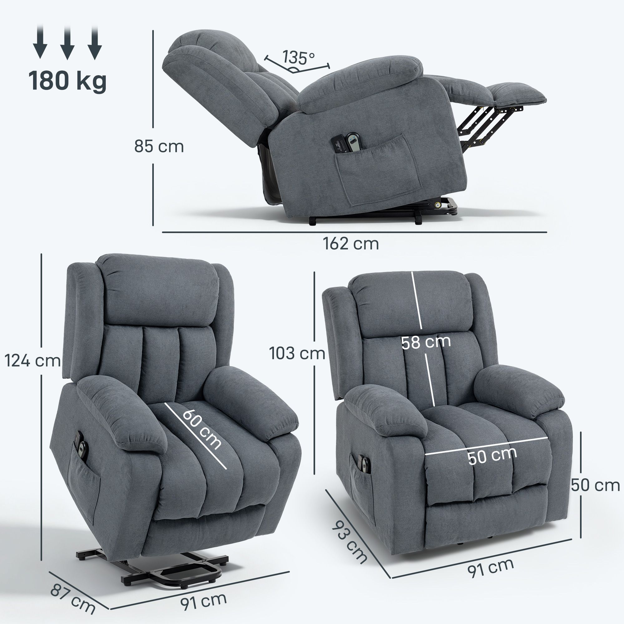 MARVEXEN Power Lift Recliner Massage Chair with Footrest, Remote and Side Pocket - Grey