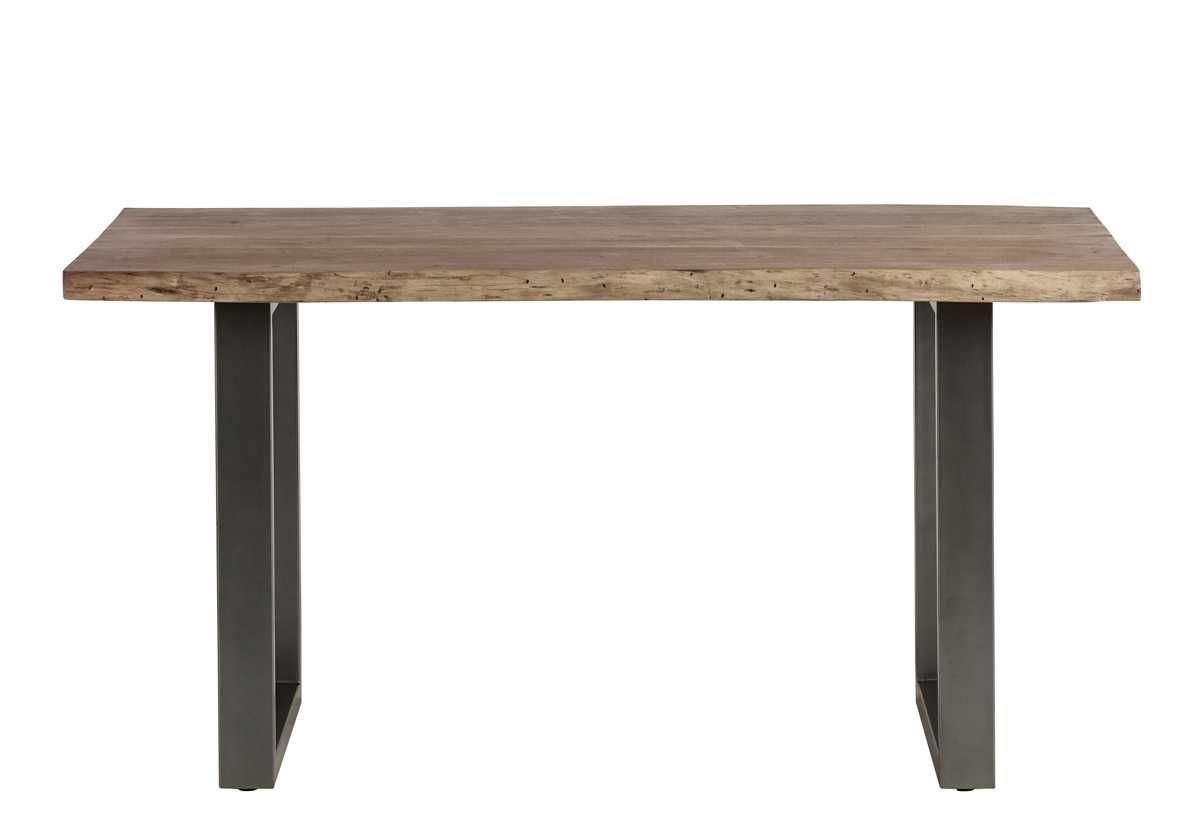 Medium sized Live edge dining table made from Acacia wood, with a live edge wood top. Natural wood grain is enhaced by the matt lacquer applied on the wood, while the sturdy metal legs bring an industrial touch to the item. Perfect for seating 4-6 people.