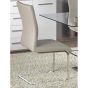 Explore the Maverick collection of modern furniture, exclusively available at Home Done. The Maverick Chrome & Grey PU Chairs bring style and comfort to your dining space. Featuring sleek chrome legs and plush grey PU upholstery, these chairs exude contemporary elegance. They provide ample seating for you and your guests. Sold in sets of two, these chairs require assembly, making them a convenient addition to any home. Elevate your dining experience with the Maverick Chrome & Grey PU Chairs.