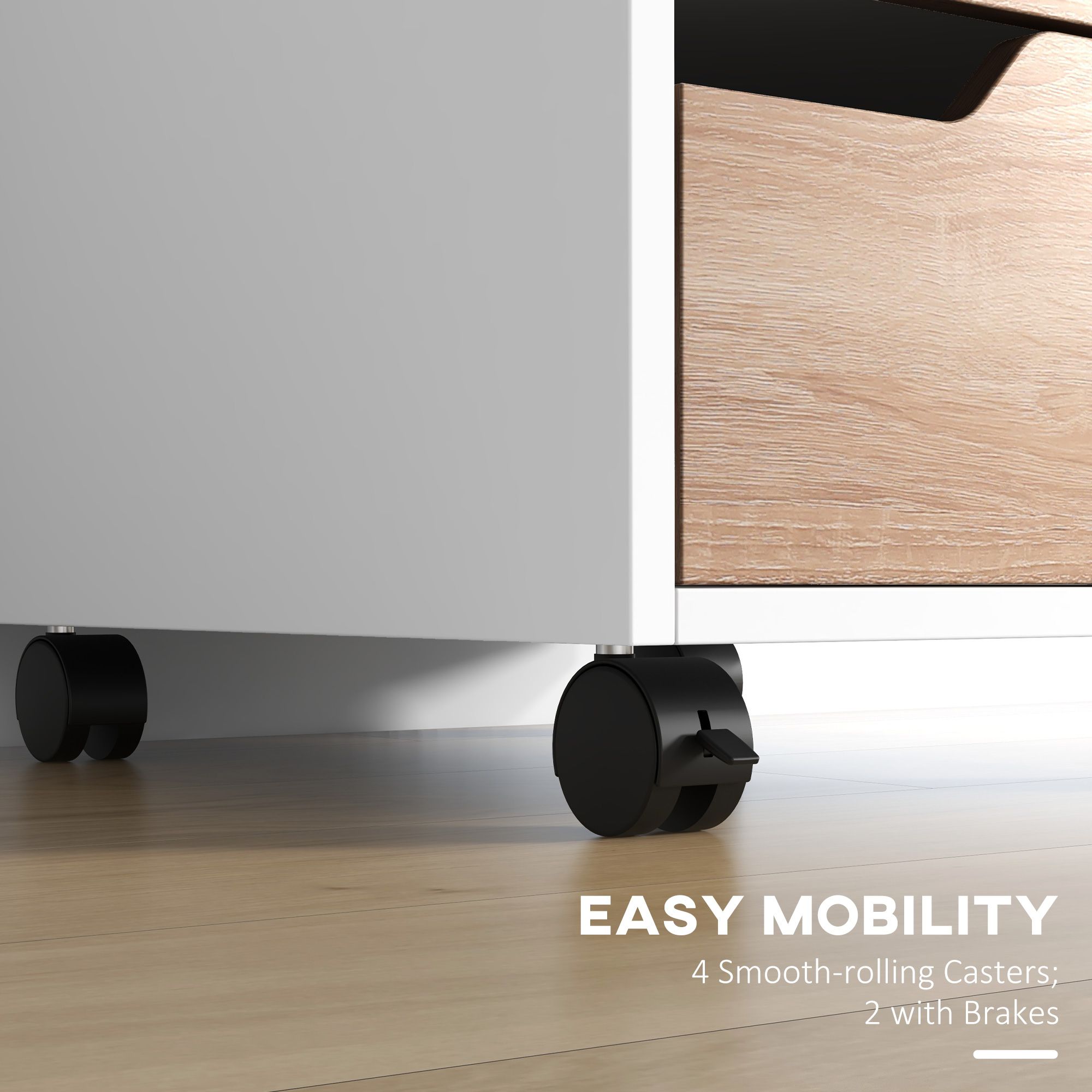MDF Mobile File Cabinet pedestal with 3 Drawers Lockable Casters Oak and White