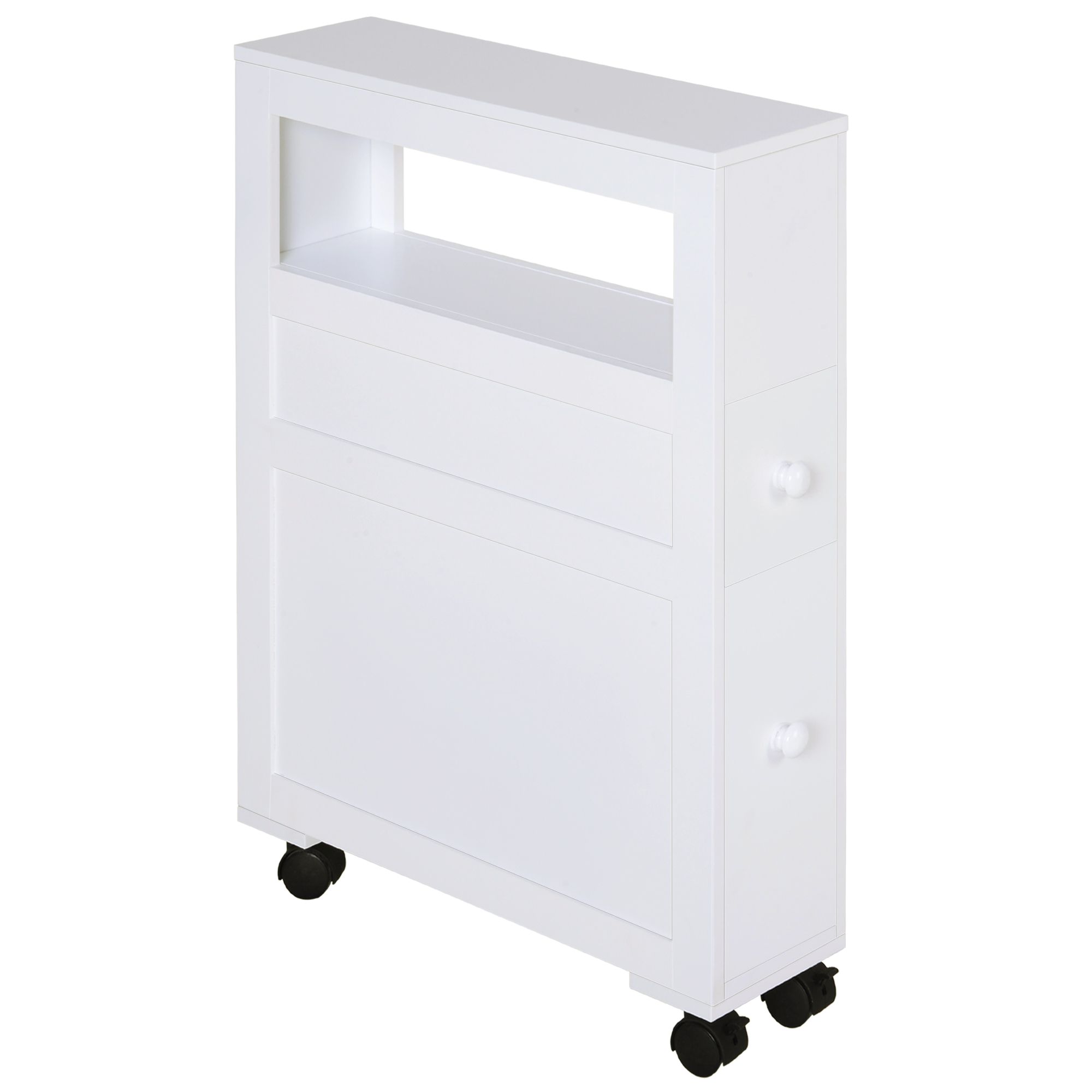 - PRACTICAL DESIGN: Extra slim, it will fit into tight spots to practically extend your storage. Modern shape in white is fresh and versatile.