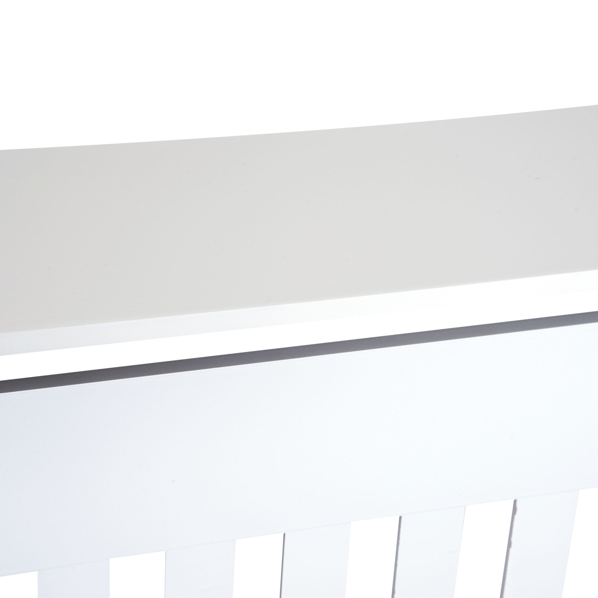 This modern and contemporary styled radiator cover from is a great helper to hide old or unsightly radiator, protect hands from hot surface and offer extra shelving for ornaments. Made from white painted MDF, it is ready to be assembled and installed without the need to add any finishing touches. The slatted design with sufficient vents allows for fluid heat flow while still preventing children and pets from touching the hot radiator surface and causing injuries. This is an elegant and practical addition to your home and office.