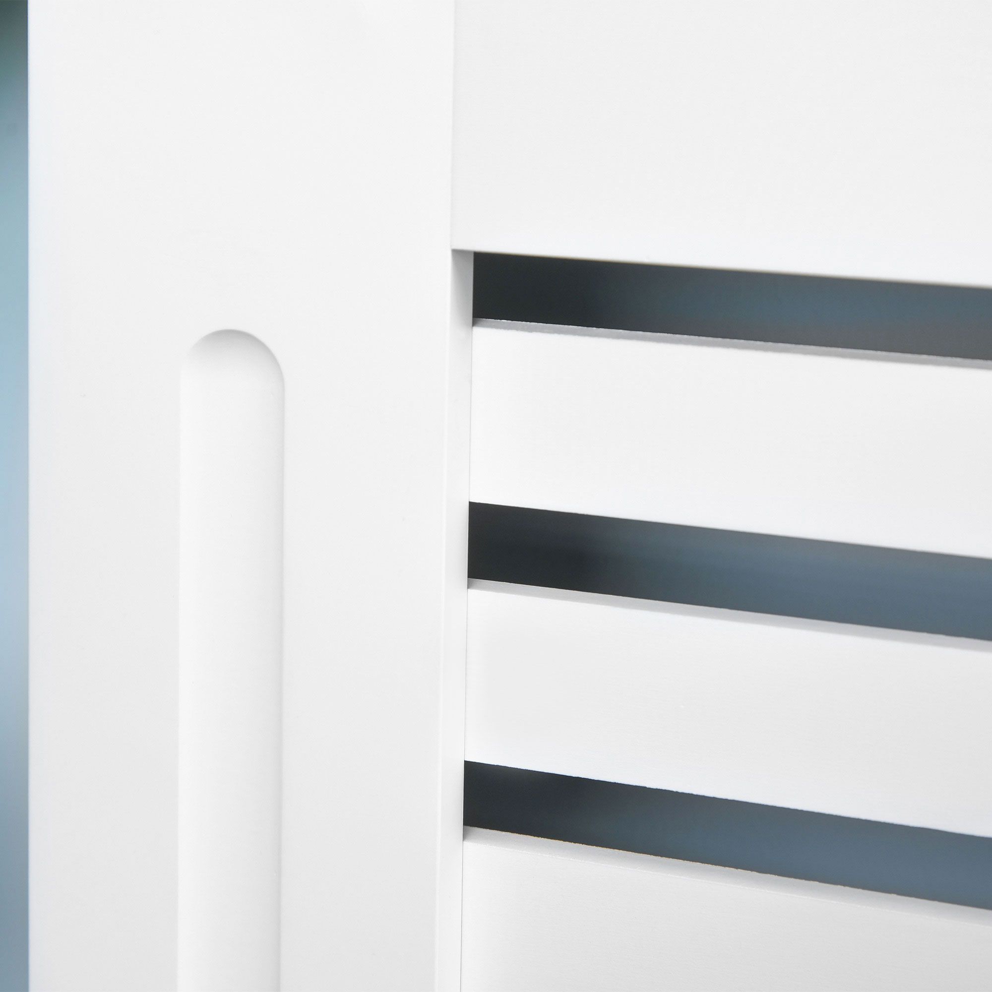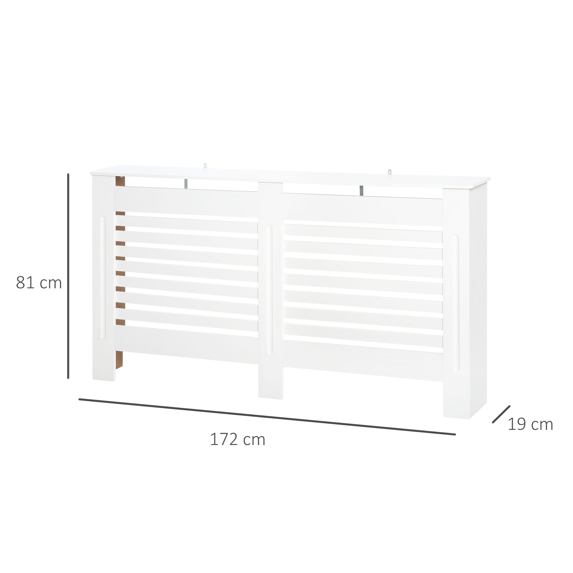 MDF White Painted Radiator Cover Slatted Cabinet Shelving Display Horizontal Style Modern Piece 172L x 19W x 81H cm