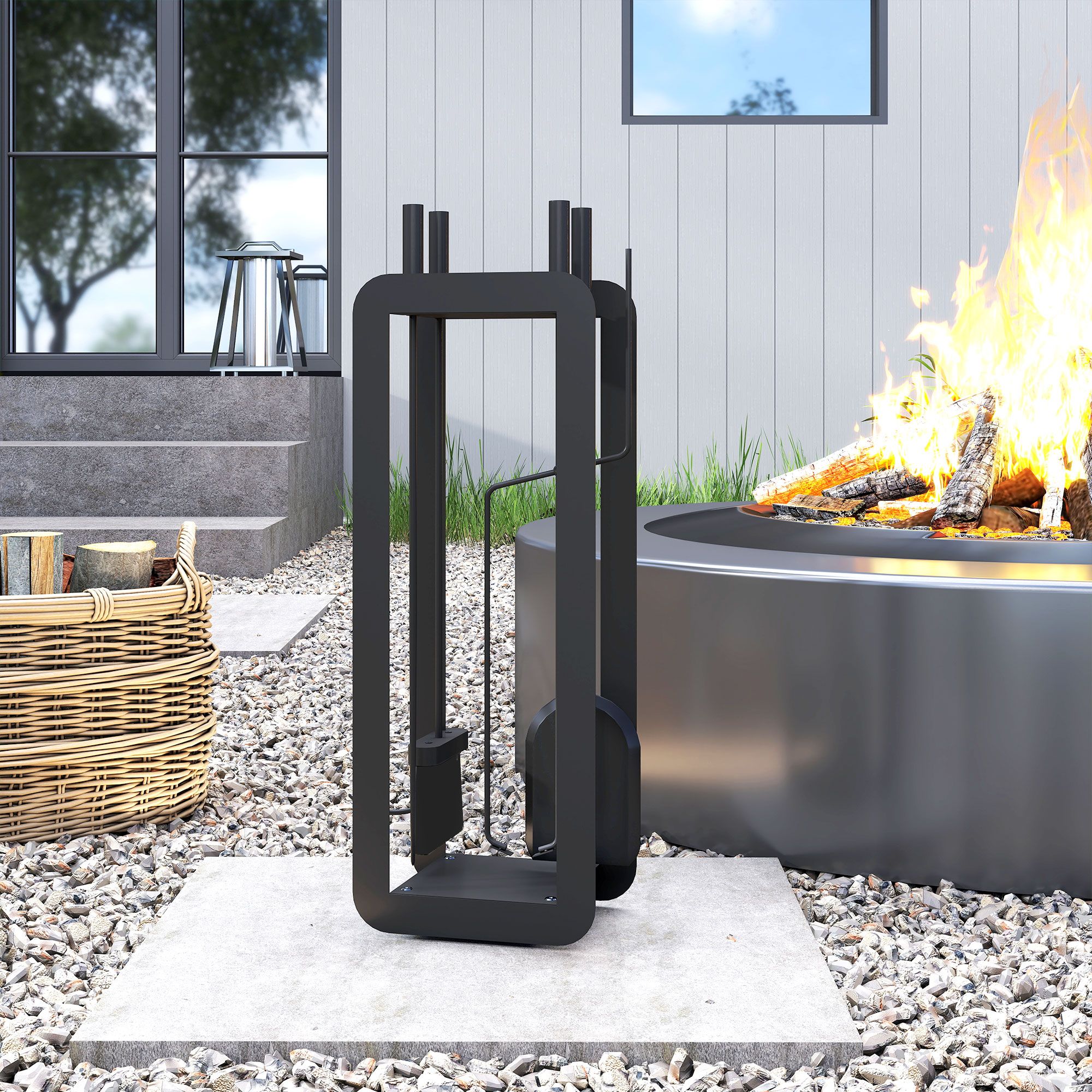 MELVO 5 Pieces Fireplace Companion Set Metal Fireside Accessories - Black