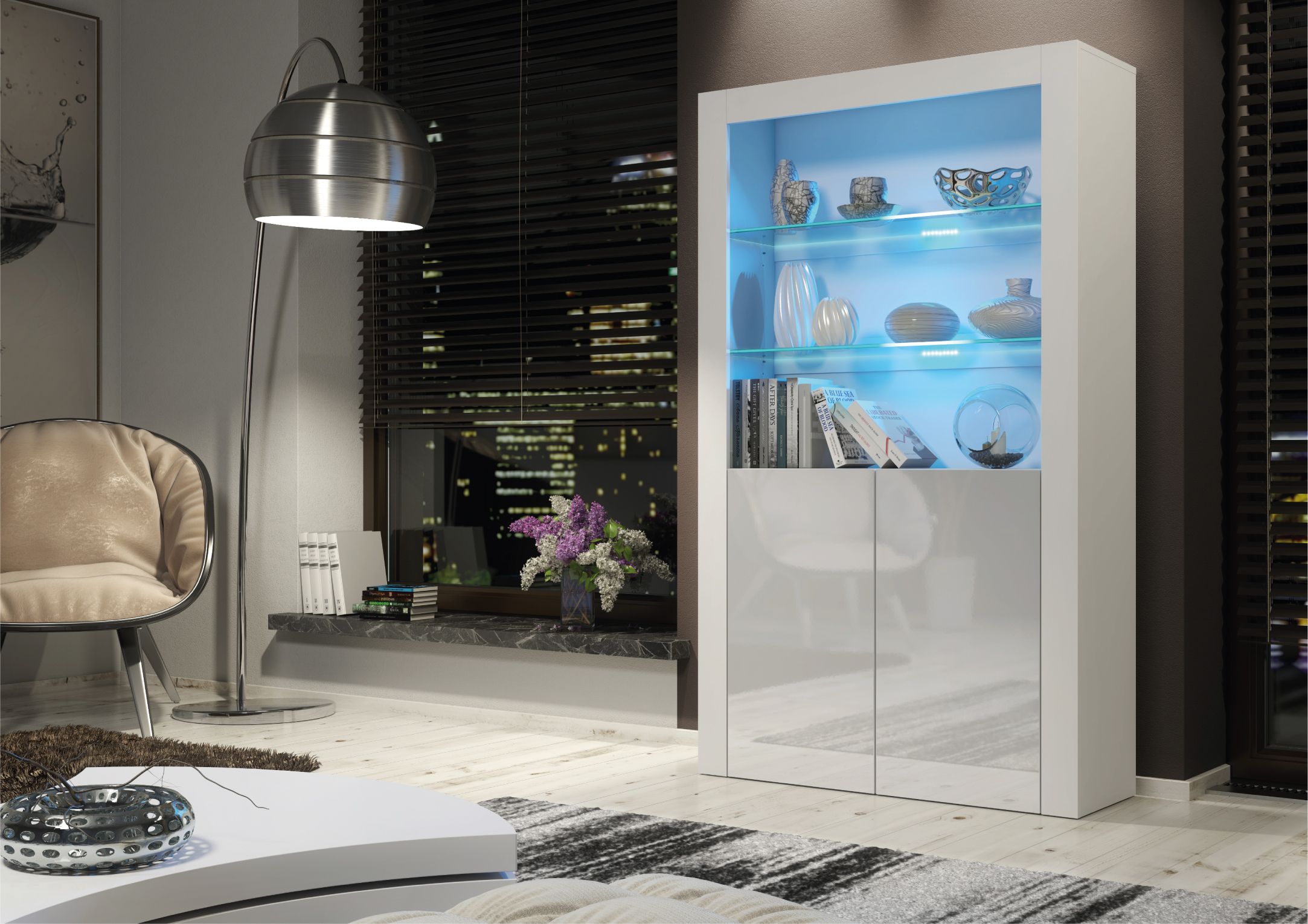 MENTON Display Cabinet 170cm - Grey