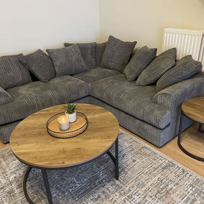 The Mercury Ajo Corner Sofa defines comfort and style at a price that does not break the bank! With soft, puffy jumbo cord fabric on the outside and deep fibre-filled seats, the Mercury Ajo Corner Sofa sets the bar high for all fabric corner sofas. Already one of the top sellers in the corer sofas category, the Mercury Ajo Corner Sofa now comes with a 5 year manufacturer warranty and is available in both Grey, Mink and Black.