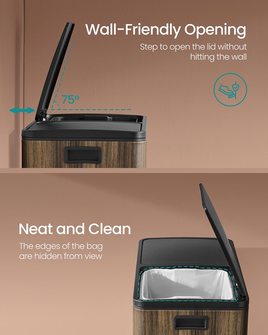 MERRIBROOK 2 Compartment Kitchen Rubbish Bin with Soft Close Lids - Dark Oak and Black
