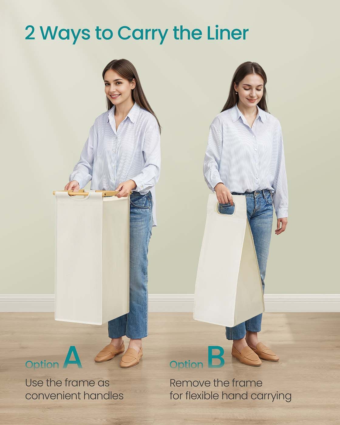 MERRISHORE 4 Compartment Laundry Basket with Shelf and Pockets - Light Oak and White
