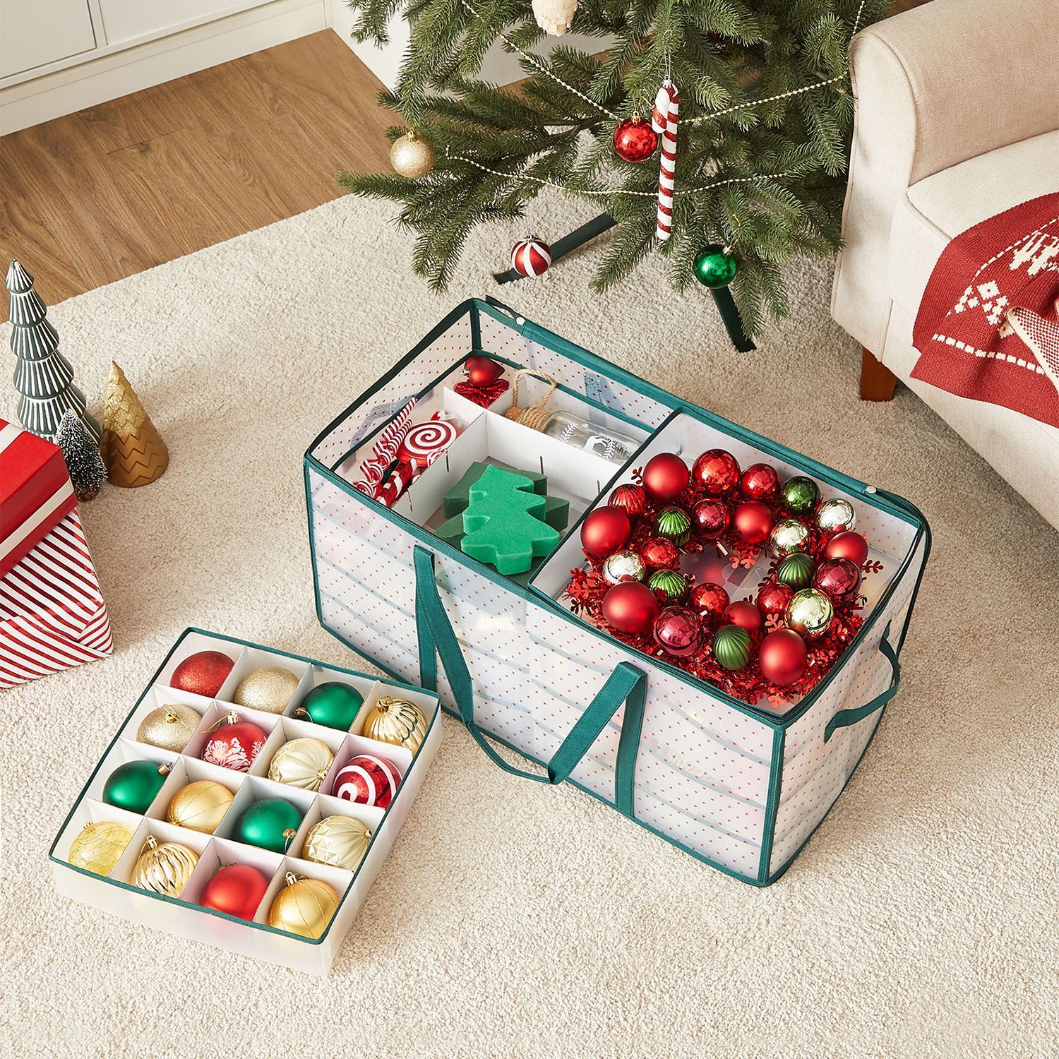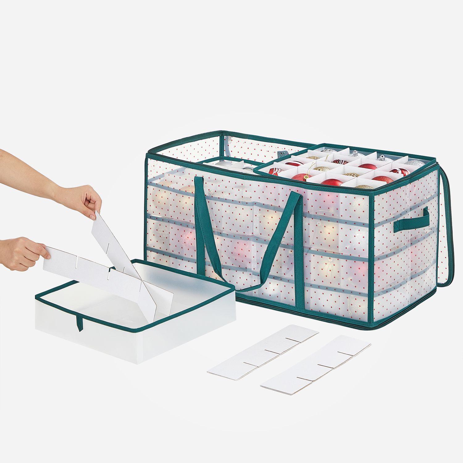 Welcome the magic of Christmas with ease using Home Done's Merry Moments Christmas Ornament Storage Box. Say goodbye to frantic searches for missing ornaments and hello to a beautifully organized holiday display. This semi-transparent, green storage box features modular dividers, allowing you to create up to 128 customized compartments for your treasured baubles, bells, and angels. With 8 removable trays and adjustable dividers, you can tailor the storage to fit your unique decorations. Durable PP plastic construction ensures years of reliable service. Home Done offers a wide range of furniture and home organization solutions, including holiday decoration storage, underbed storage containers, closet organizers, storage bins, and shelving units.