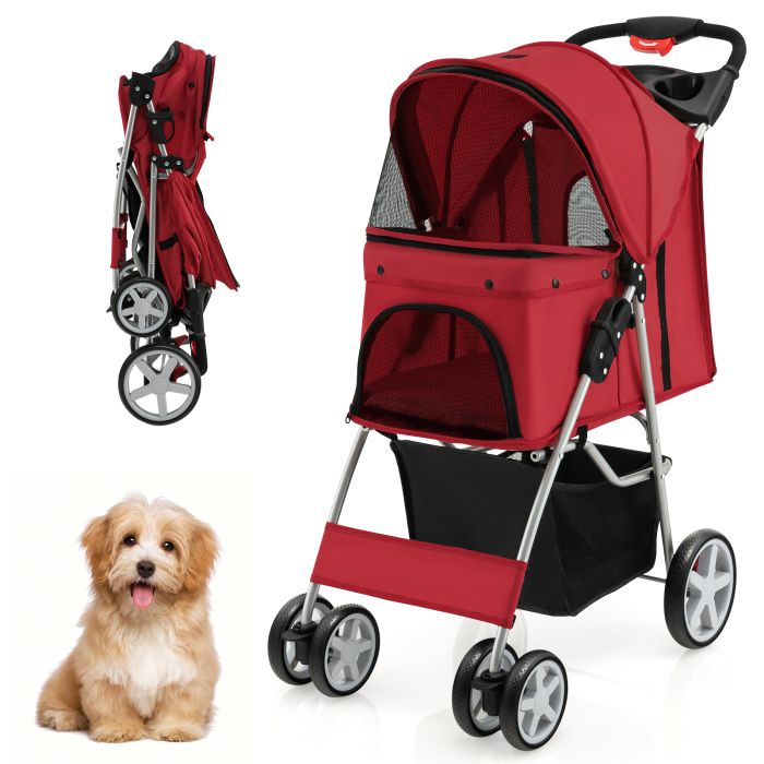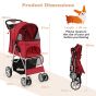 MERVELLON 4-Wheel Folding Pet Stroller with Storage Basket and Adjustable Canopy-Red