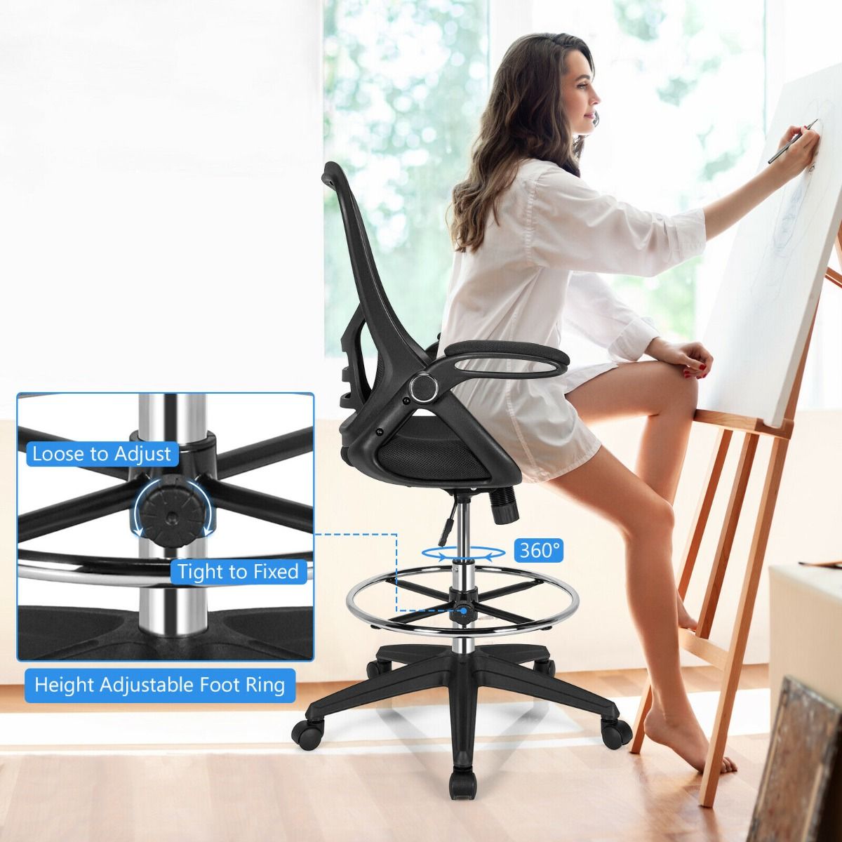 Mesh Drafting Chair with Flip-up Armrests and Mid-Back Padded
