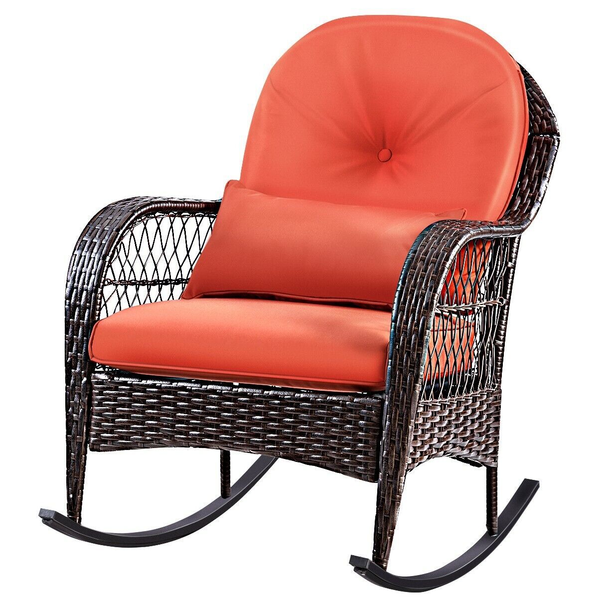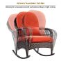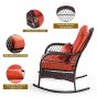 Rattan Outdoor Rocking Chair Wicker Metal Armchair with Red Cushion