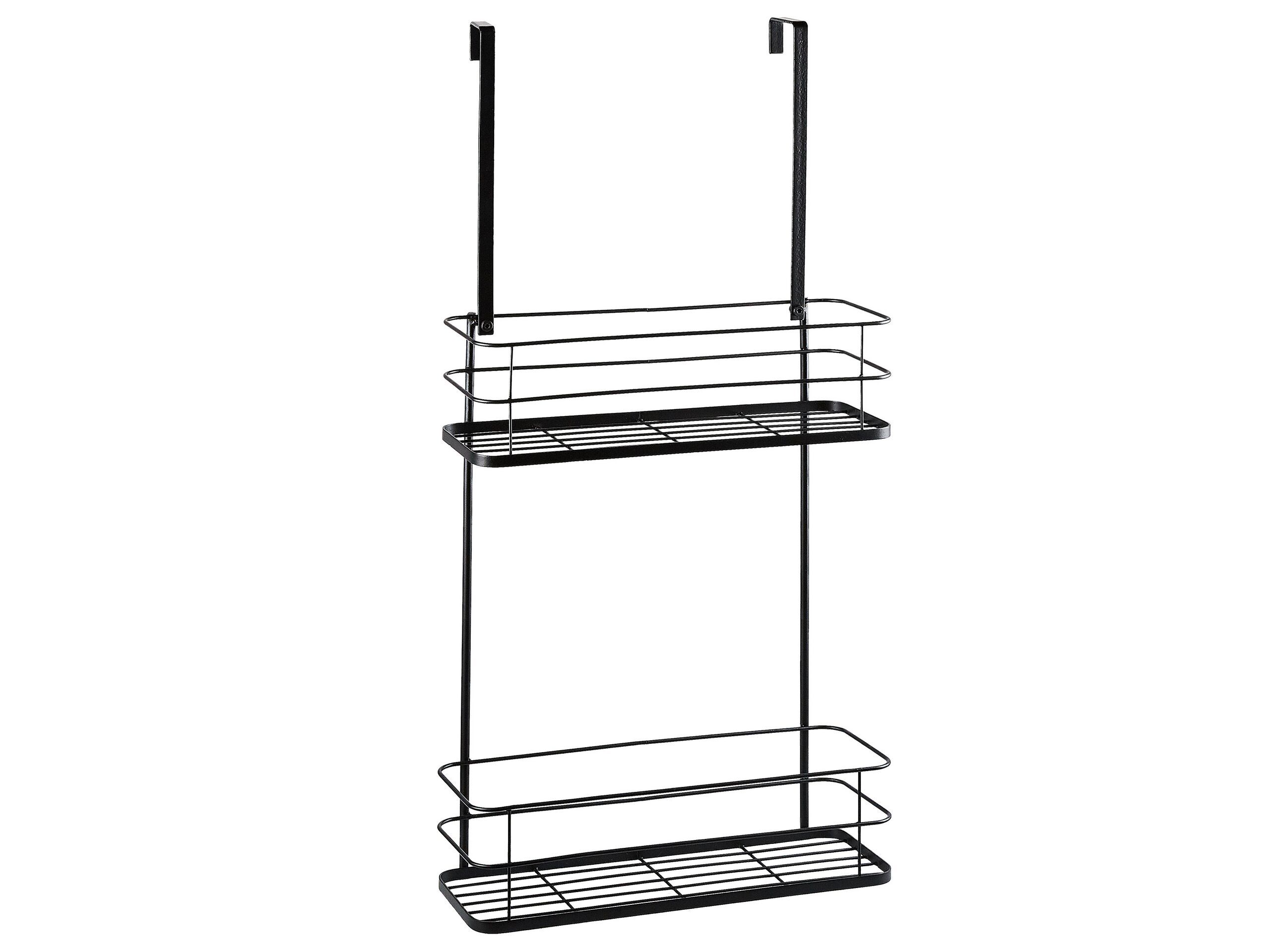 This hanging shelf will let you fully use available space and organize all bathroom essentials. Equipped with two hooks, it is easy to mount on the door-frame or shower wall. There are two baskets in a perfect size for storing shampoo bottles, shower gels, sponge etc. This shelving unit is a great solution for those who need extra storage space that doesn’t require drilling the walls. Details: Color: Black. Main material: Iron. Weight: 1 Assembly: Does Not Require Assembly